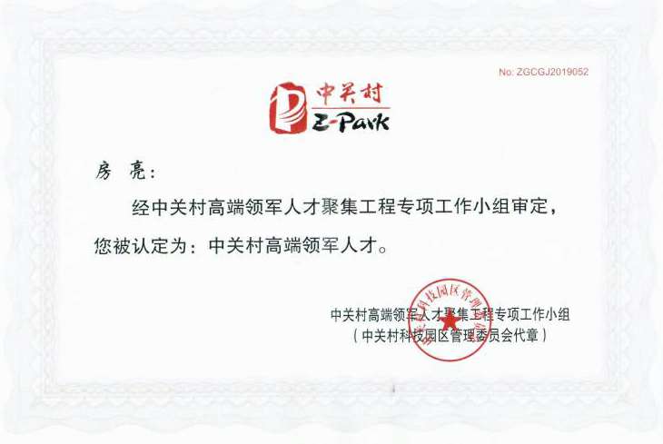 这一次房亮博士获得2019年度中关村高端领军人才的殊荣,不仅是对房亮博士创业领军能力的认可,也是对国科乐竟体育·乐竟官方网站-乐竟体育(中国)未来发展的认可。